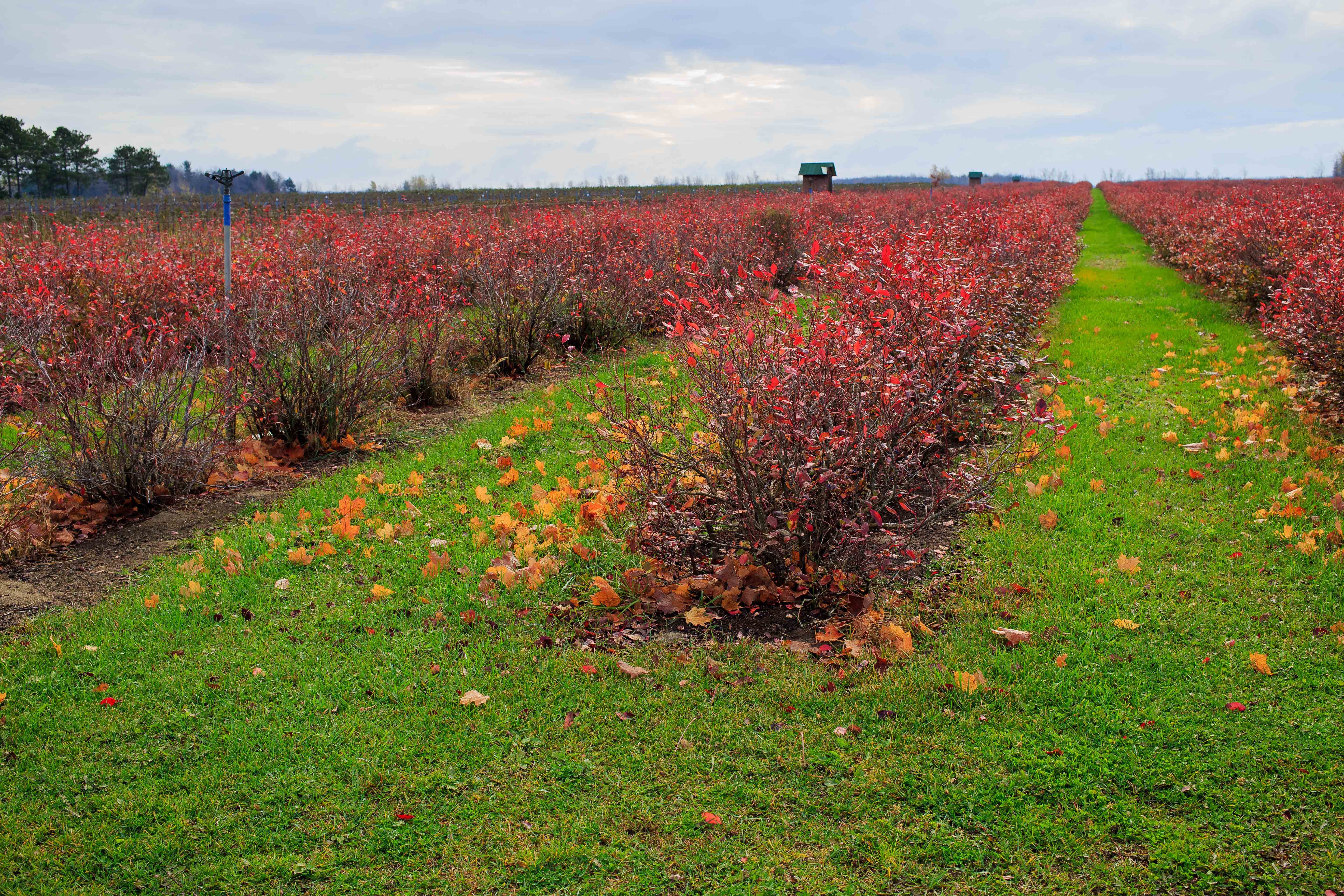 Voici la situation photo qui a retenu mon attention.  Les coloris automnaux d’un magnifique champ d’arbustes fruitiers.  Ce dernier avait attiré mon regard quelques jours auparavant.  La lumière était à ce moment-là magnifique.  Quelques jours plus tard, la lumière est ingrate mais j’aime bien le ciel lourd de nuages.  J’aime le contraste entre les coloris et les nuages menaçants.  En prime, ces longues rangées d’arbustes et les lignes de fuite qui en résultent sont toujours des sujets photo attrayants.  Une première photo simplement pour documenter l’ensemble pour le bénéfice de notre article d’aujourd’hui.