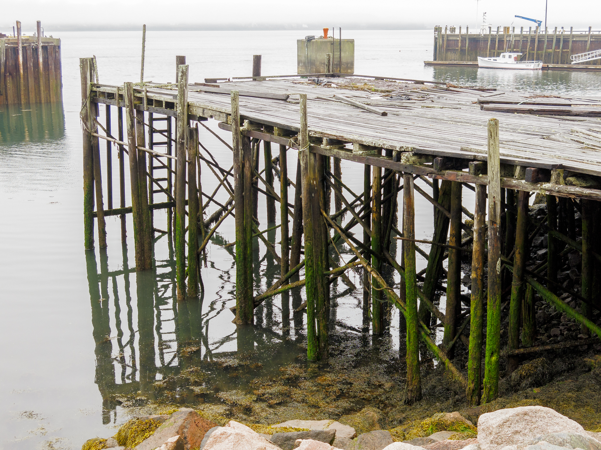 Voilà qui a de quoi retenir notre attention. Un quai à l’abandon avec des signes évidents de faiblesse. Parions que le premier réflexe est de capter ce quai, son apparence, sa désuétude et son emplacement. Voilà qui est tout à fait correct. On peut aussi faire cette photo pour documenter notre voyage. Le cadrage que j’ai fait inclus peu de ciel car ce dernier était grisâtre, sans personnalité, sans détails et définition – le piège de la surexposition étant certainement une possibilité en raison du sujet plus sombre et le ciel tout blanc.